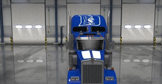 This is for the Kenworth W900. This is for fans of Duke University (basketball, football, etc.). In fact, this is a start of a collegiate series I decided to do. It does have some decals including the CALIFORNIA CLEAN IDLE sticker on the driver side door, an IFTA Cali sticker on both doors and a FIRE EXTINGUISHER and FIRST AID on both sleeper sides and an American flag and a NC flag. If you want your business name on it, please contact me/comment. Thank you.