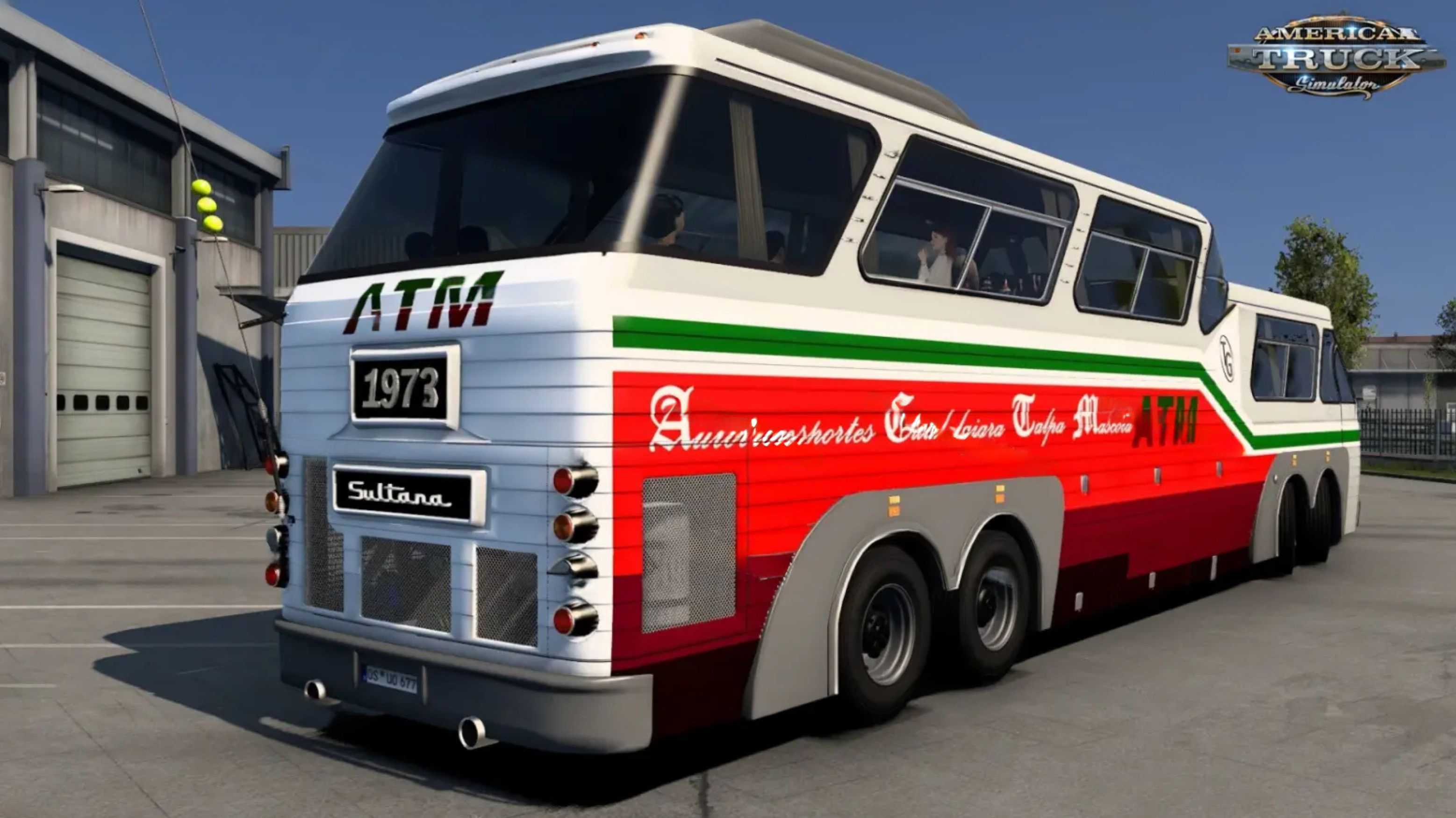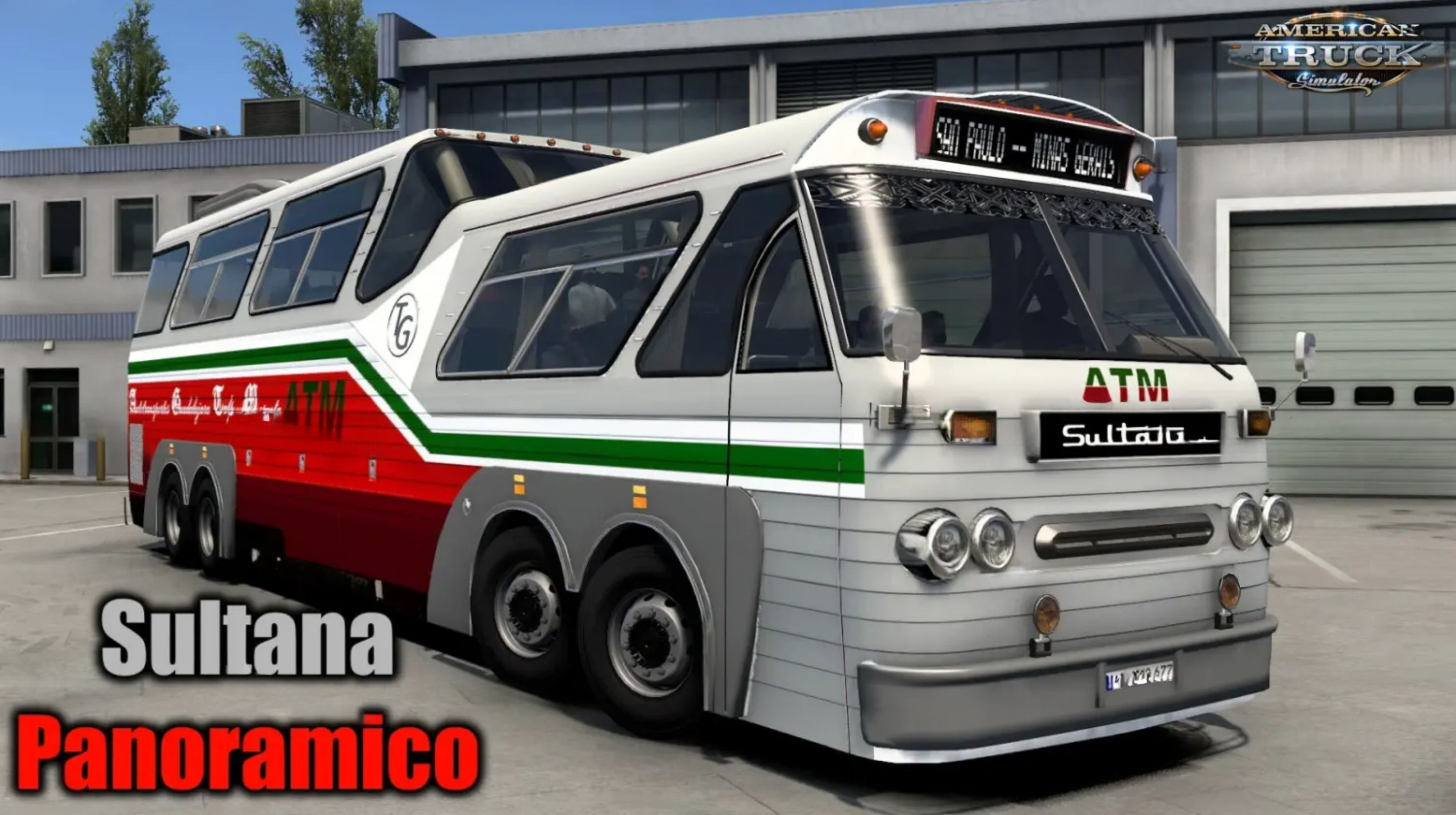 Sultana Panoramico Bus for ATS – old vintage bus model with own interior and a large set of accesories to choose added for ATS and ETS2 players. The Sultana Panoramico bus features retro design and impressive dimensions, an unusual appearance complements its own interior with advanced animation and support for new ETS2 functions. The author has implemented an interior available in two colors, added 4 internal combustion engines (500-730 hp) and 3 gearboxes (6, 8 and 12-speed), external tuning and 30 colorful skins.