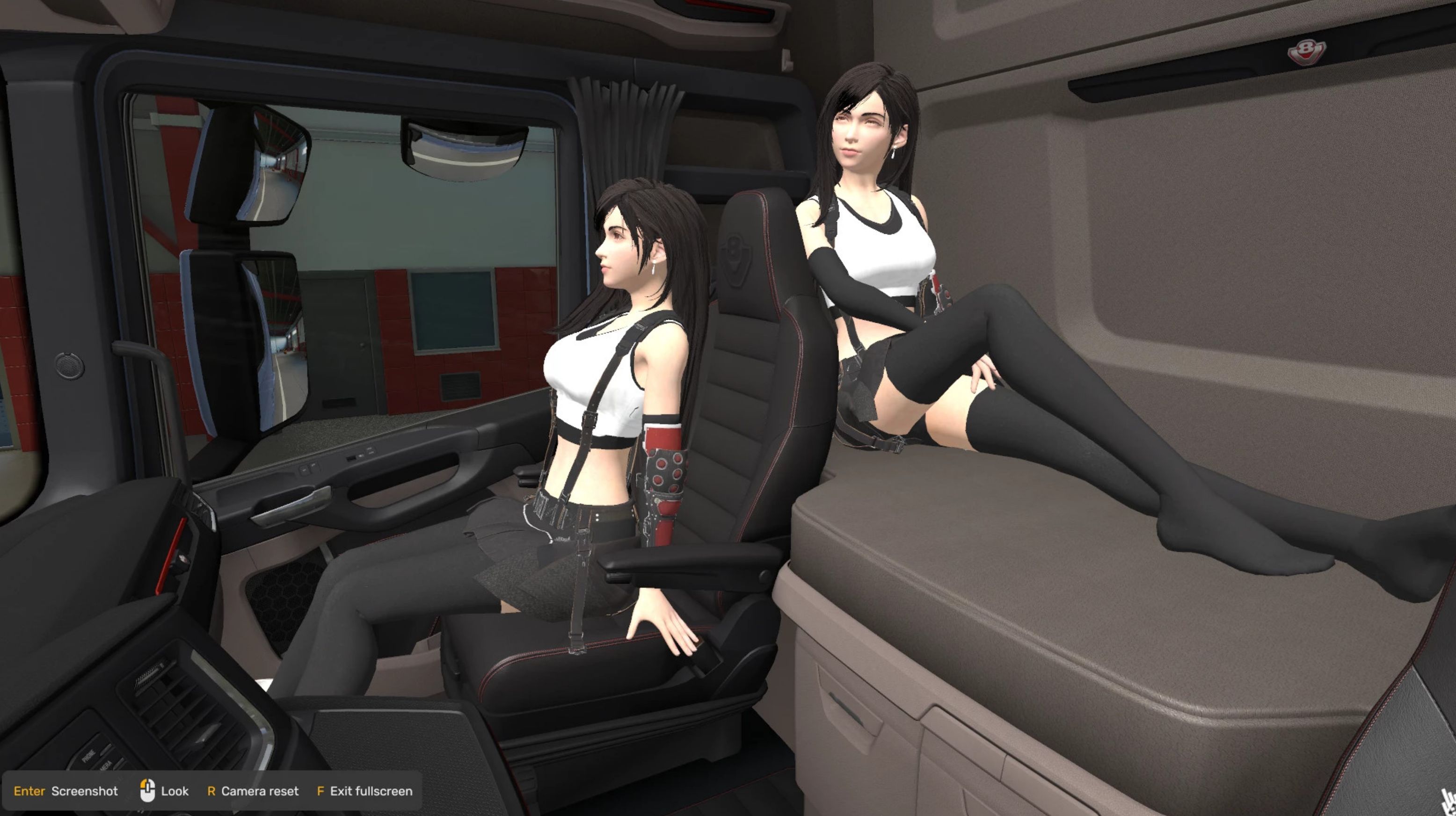 Due to limit space of sleeper area, some truck cannot have a sleeper pose. Expected a bit clipping here and there.
