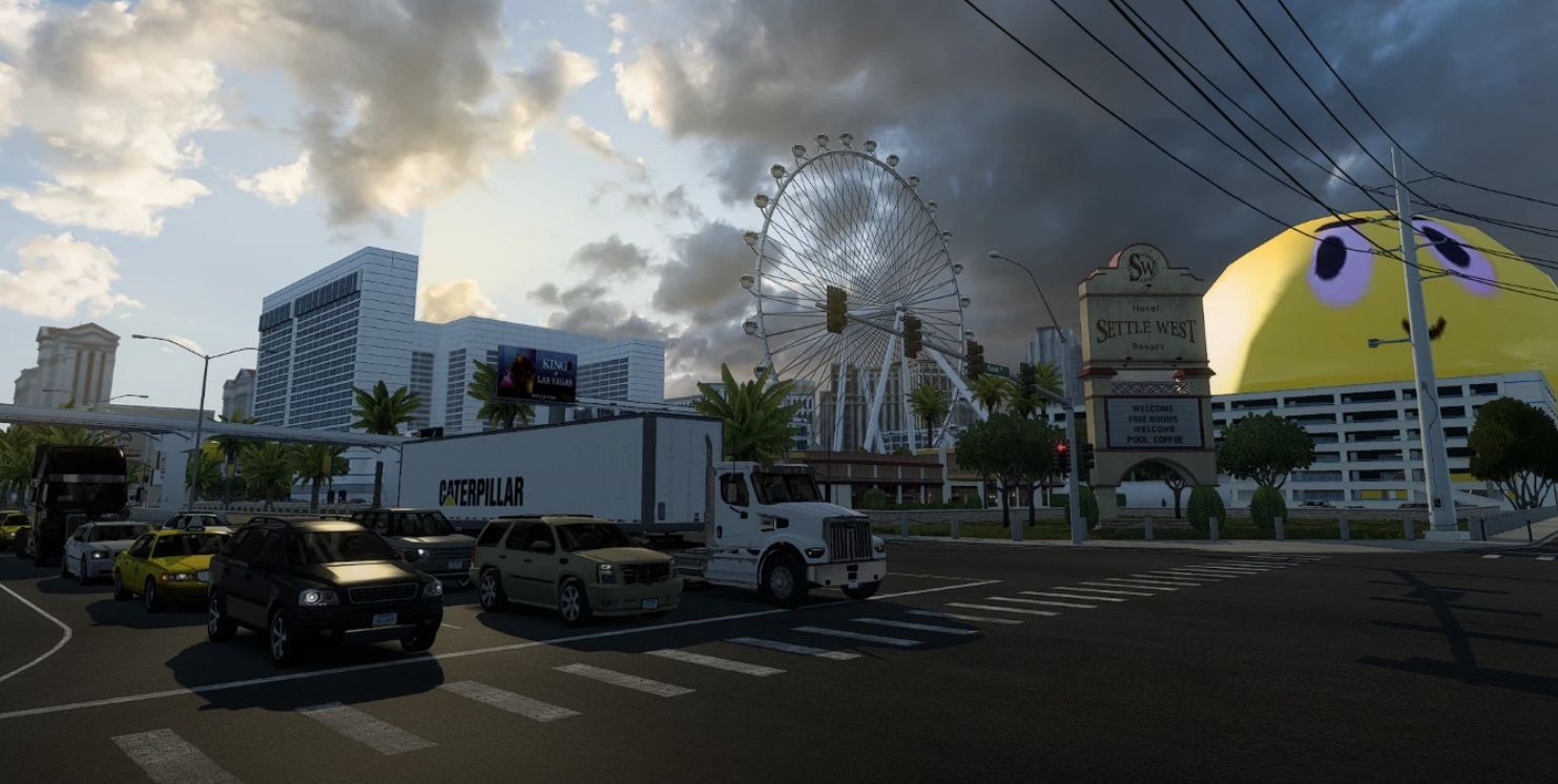 This add-on of our popular real companies, gas stations & billboards mod will go further where the Steam limitations can take us. In the initial release we have decreased the number of Walmart’s by changing them to Target and Swift depots. This means Target and Swift won’t be just in the Texas DLC anymore. It also opens the door to add regional supermarkets in the future. Also in the initial release is IKEA. We took the ETS2 prefab and placed in ATS. There are about 9 depots, all in the cities we’re they are in real-life. Last, but not least, we opened up some landmarks to deliver to. You can now go to several stadiums, convention centers and maybe even a festivalground..