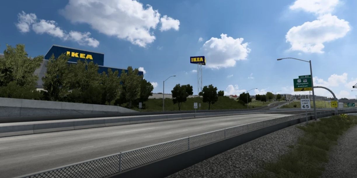 This add-on of our popular real companies, gas stations & billboards mod will go further where the Steam limitations can take us. In the initial release we have decreased the number of Walmart’s by changing them to Target and Swift depots. This means Target and Swift won’t be just in the Texas DLC anymore. It also opens the door to add regional supermarkets in the future. Also in the initial release is IKEA. We took the ETS2 prefab and placed in ATS. There are about 9 depots, all in the cities we’re they are in real-life. Last, but not least, we opened up some landmarks to deliver to. You can now go to several stadiums, convention centers and maybe even a festivalground. For this mod, the Texas & Colorado DLC’s are required!