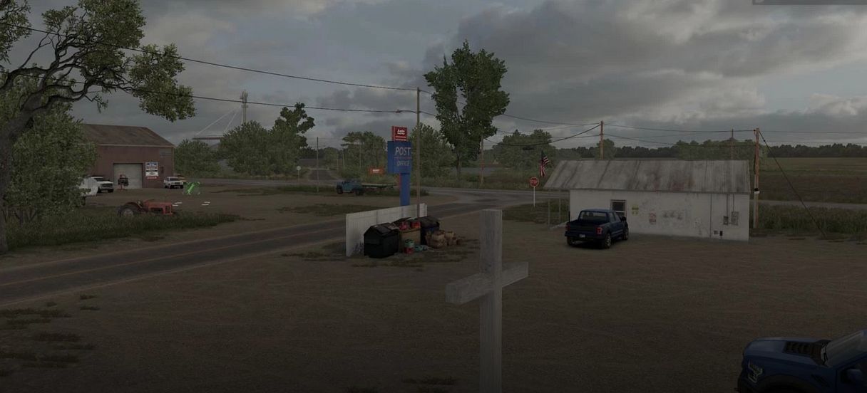 Welcome to Bronco, Kansas. Population, 77. This fictional town features a purchasable farm with grain and cattle jobs. Inside the town you can also find jobs for a landscape company and a feed mill, The town also features sleep and repair triggers.