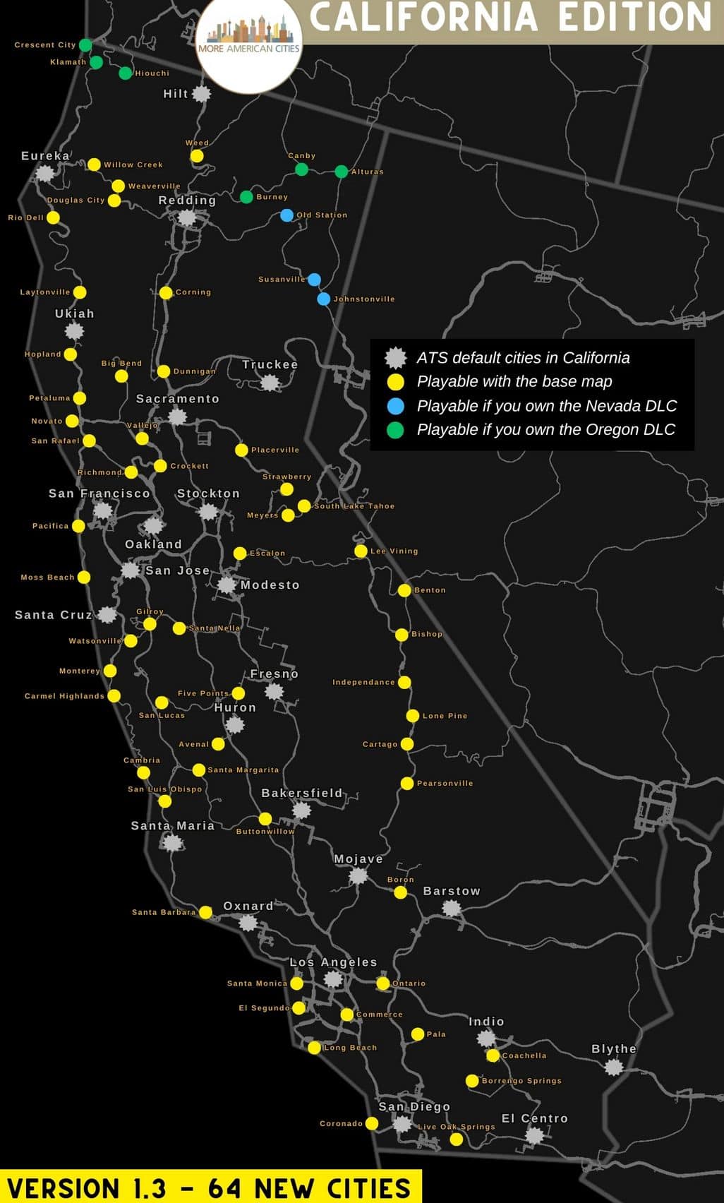 The version 1.3 activates 13 additionnal cities across California: