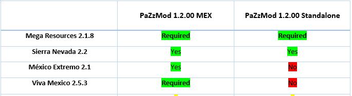 Requirements for PaZzMod-MEX version: