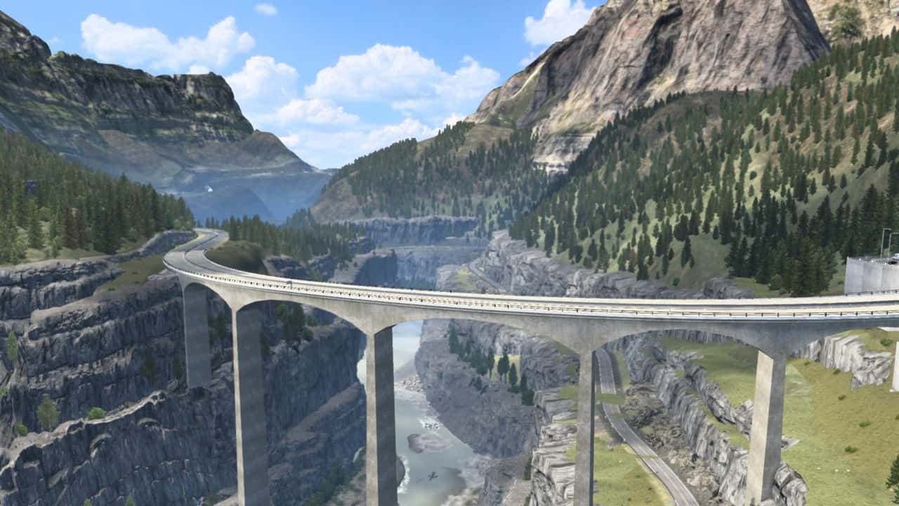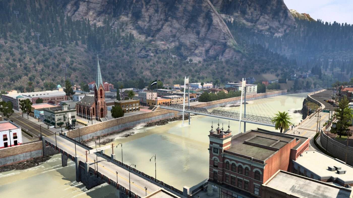 “Esterlon” is a fictional country whose geographical location is unknown, adding a touch of mystery and intrigue to the player’s experience. This country is inspired by the United States and Mexico, which is reflected in its cities and mountain landscapes. Esterlon’s unique road signage style is inspired by the culture and aesthetics of both countries, making driving on its roads an interesting experience.
