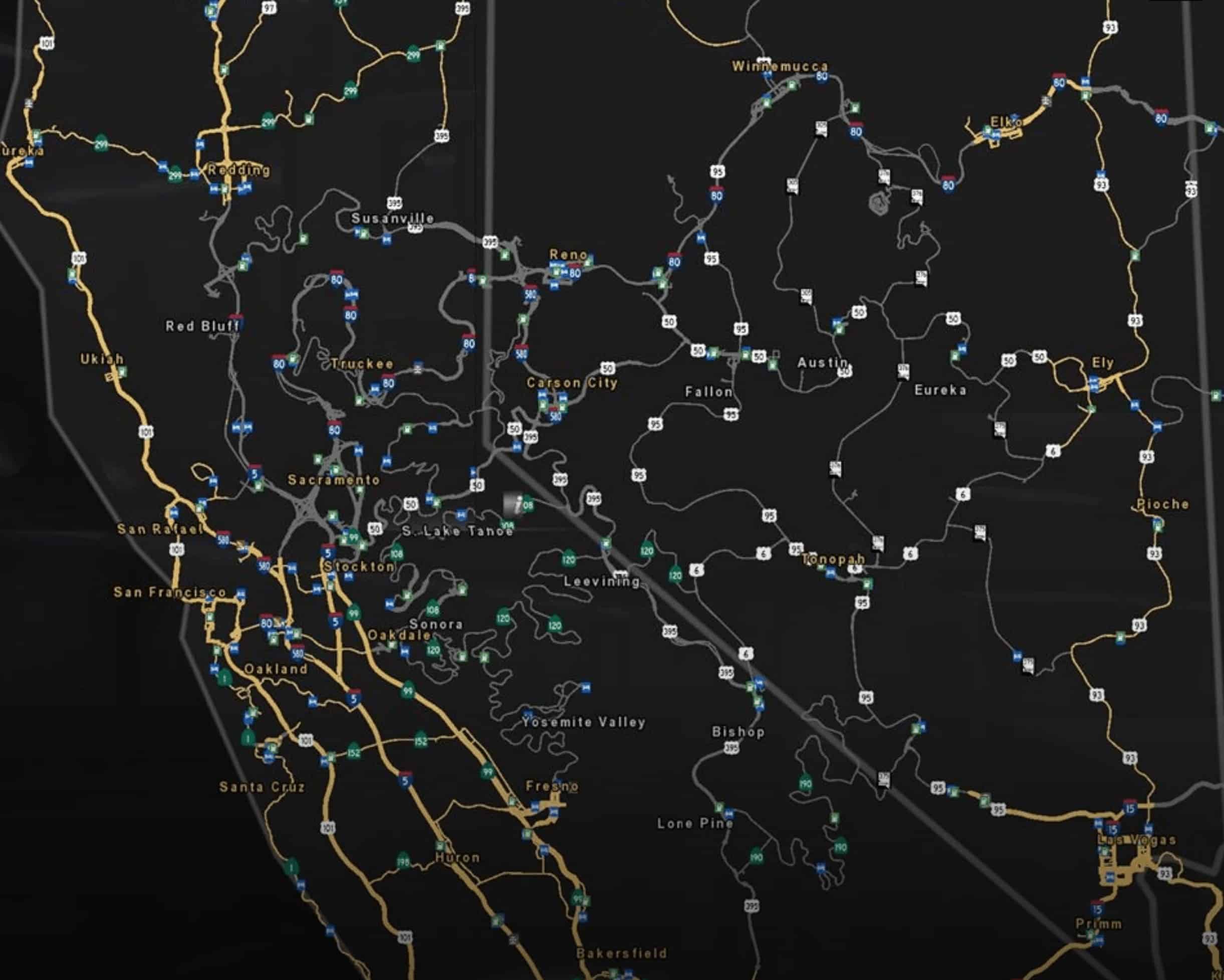 This mod remodels extensive areas in northern California and the vast majority of Nevada in the base map of ATS.