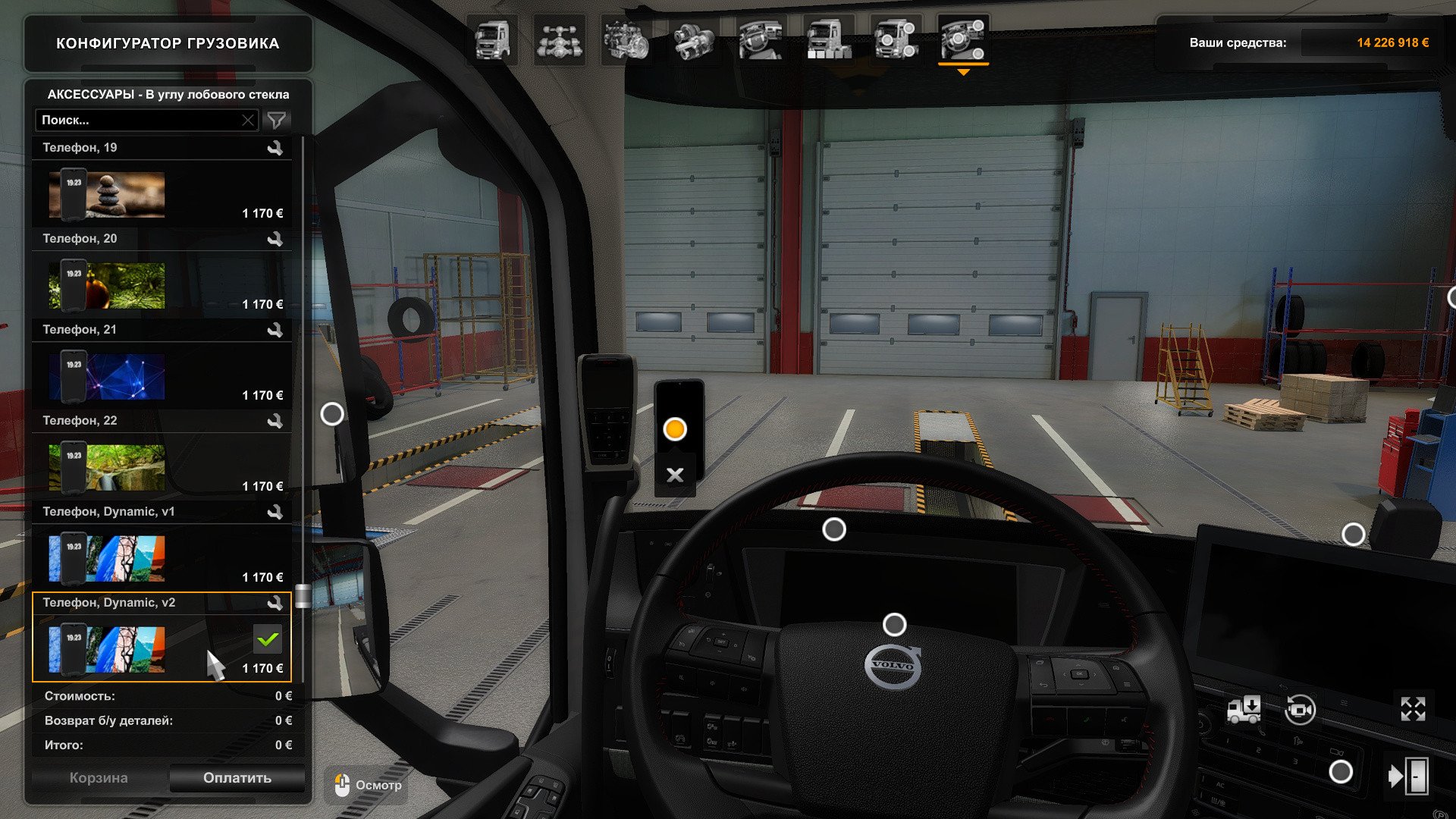 This mod adds 22 types of wallpaper to the phone with a watch. There are also two options for dynamically changing wallpapers (depends on the percentage of fuel level, in two variants – more often and less often). No changes to trucks or phone – everything is default. Tested on versions 1.48-1.53. This mod requires the Toys DLC to work!