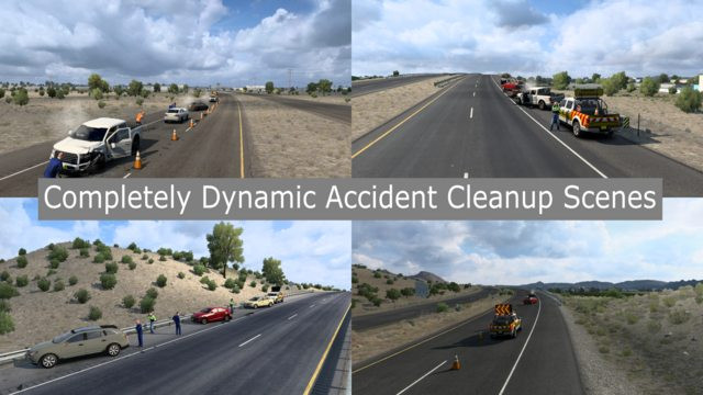This mod adds 70 new random events (many of which have many different possible variations) to appear on the roads in ATS.
