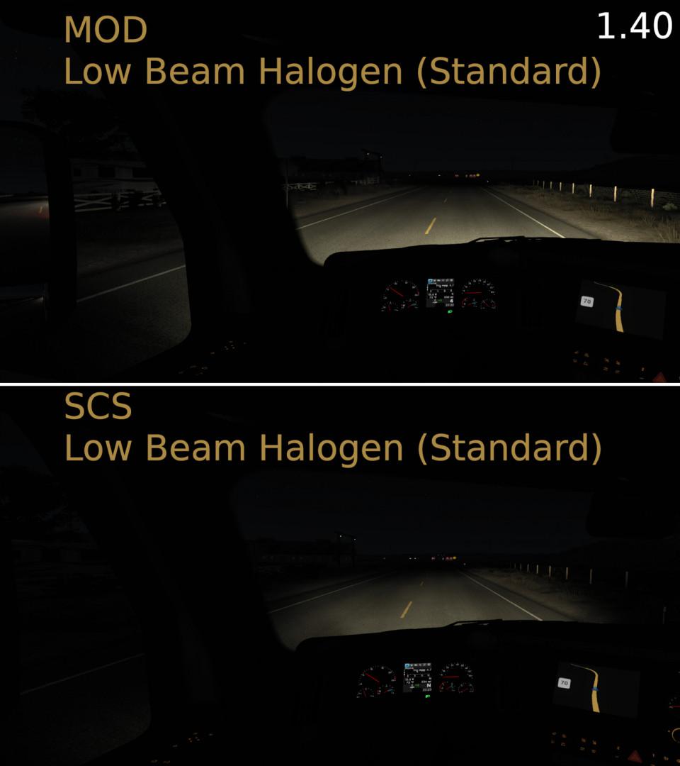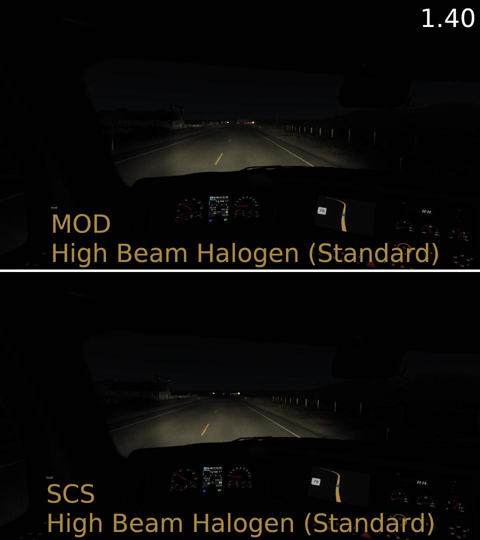 This mod widens low beams and lengthens high beams for all v1.40 SCS ATS trucks. (Selected mod trucks will come later.)