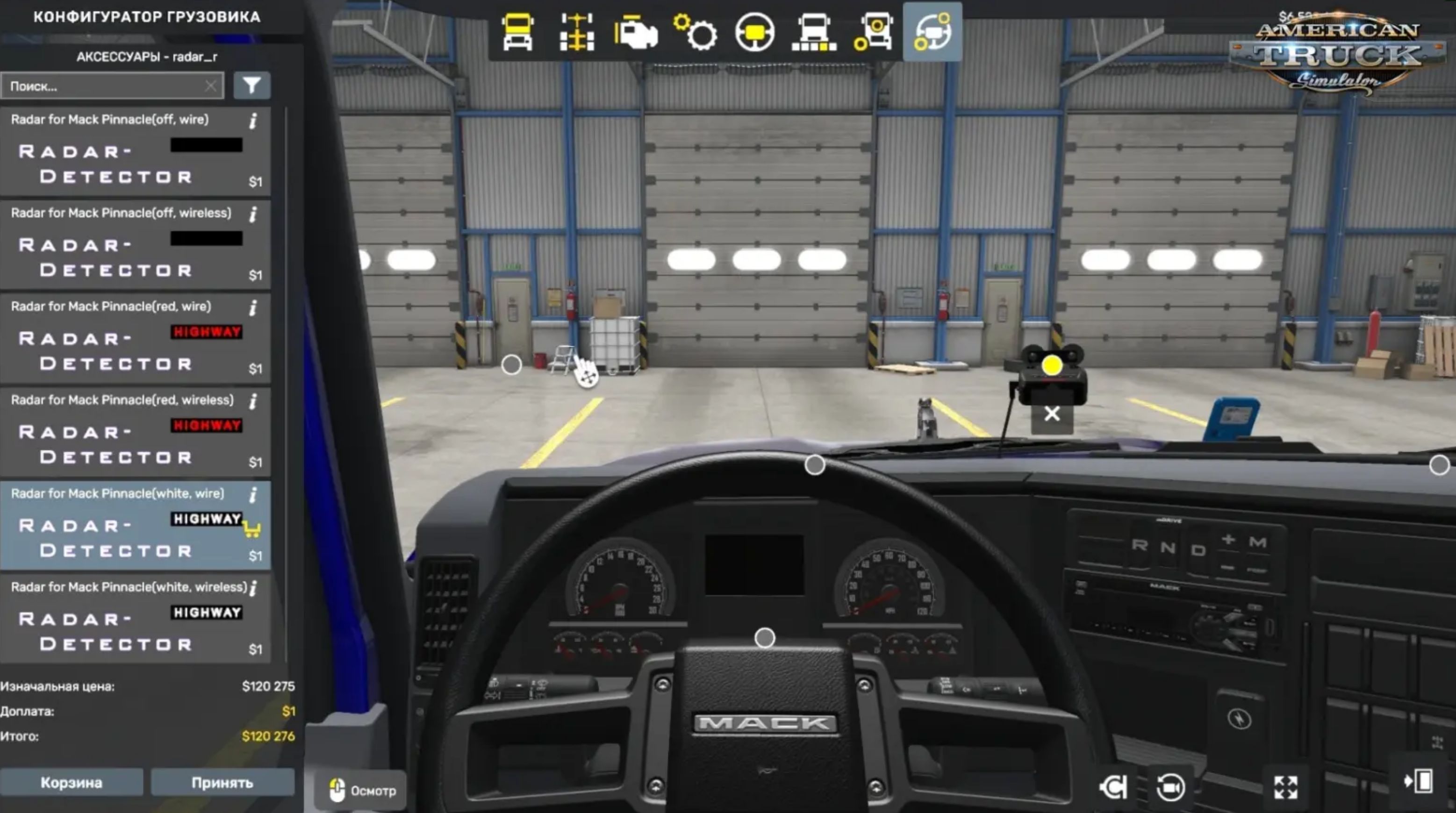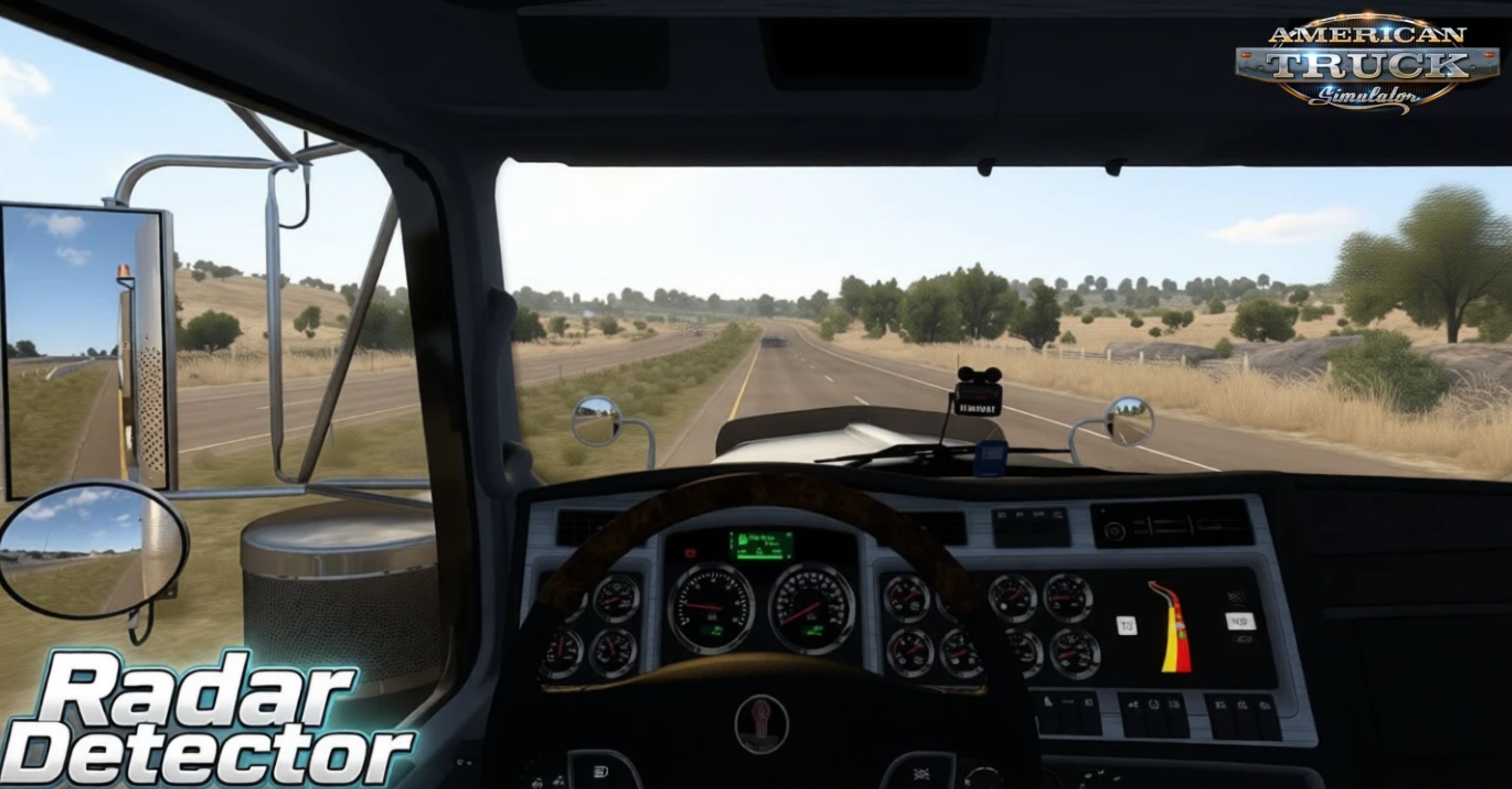Radar Detector for ATS – this mod brings a fully functional windshield-mounted radar detector to ATS players as a standalone lifesaver accessory, perfect for dodging speed camera fines and cruising ticket-free across American highways with voice alerts, red flashes on radars, and police immunity—essential for risk-free power runs on base maps and all DLCs.