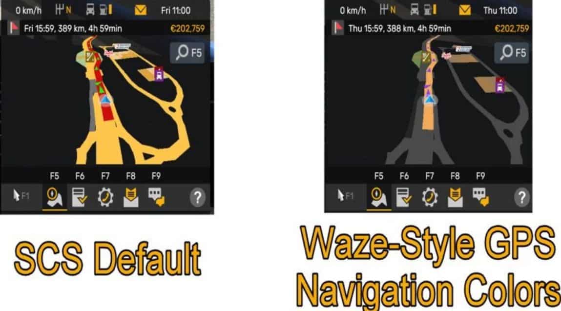 Tired of the default ETS2 GPS colors that look outdated or too bright for night drives? This mod transforms your GPS and map visuals into a modern, sleek dark-mode interface inspired by Waze and Google Maps night themes. Whether you’re hauling across Europe at dusk or managing fleets under moonlight, this mod improves clarity, realism, and comfort—without sacrificing immersion.