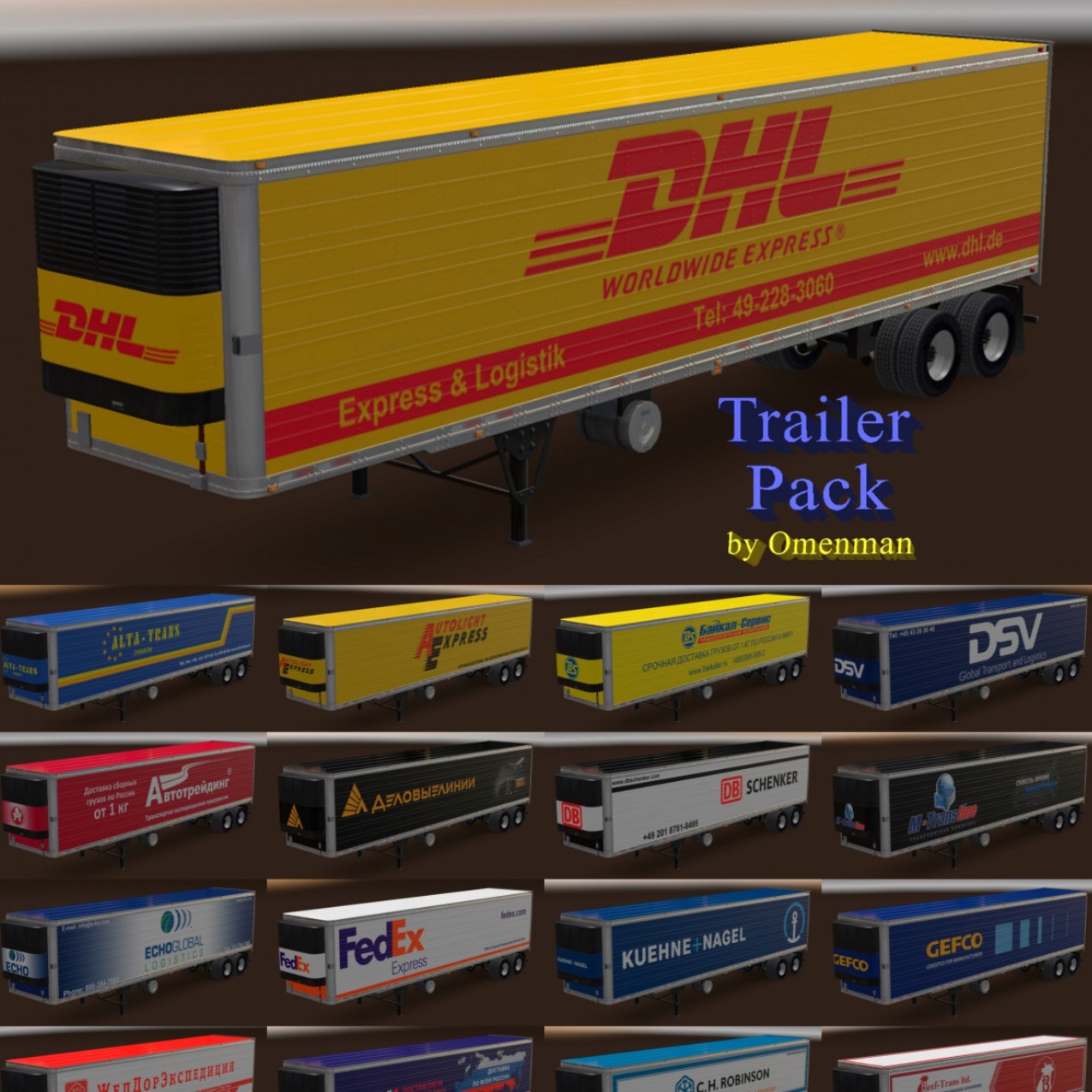 Mod of trailers with skins of logistics companies.