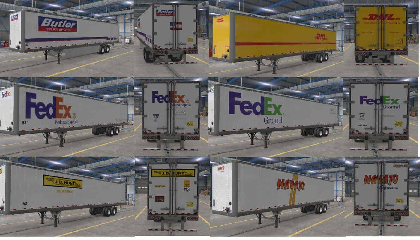 Skin pack for all box trailers (scs) 32´ 45´ 48´ & 53´, i will add more later on, you can comment which skin im missing cuz i dont know much of them since i dont live in the us.