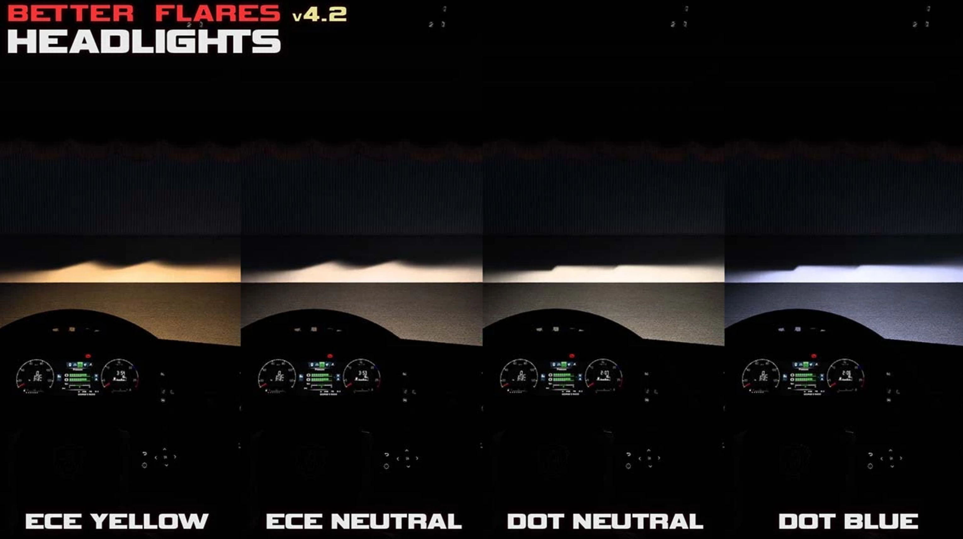 – Realistic headlights patterns with 3 different colors (up to 50 modded trucks supported)