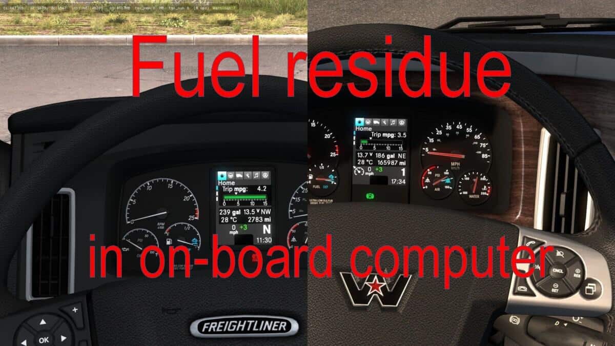 This mod adds the Remaining fuel on the home screen of the on-board computer for Freightliner Cascadia 2019 and Western Star 49X from SCS.