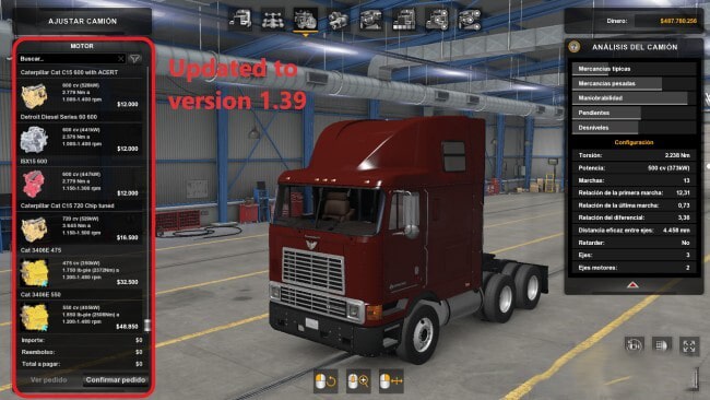 Cummins ISX, CAT C15 and Detroit Diesel engine sounds were converted to FMod only in American Truck Simulator versions 1.37 and 1.38.