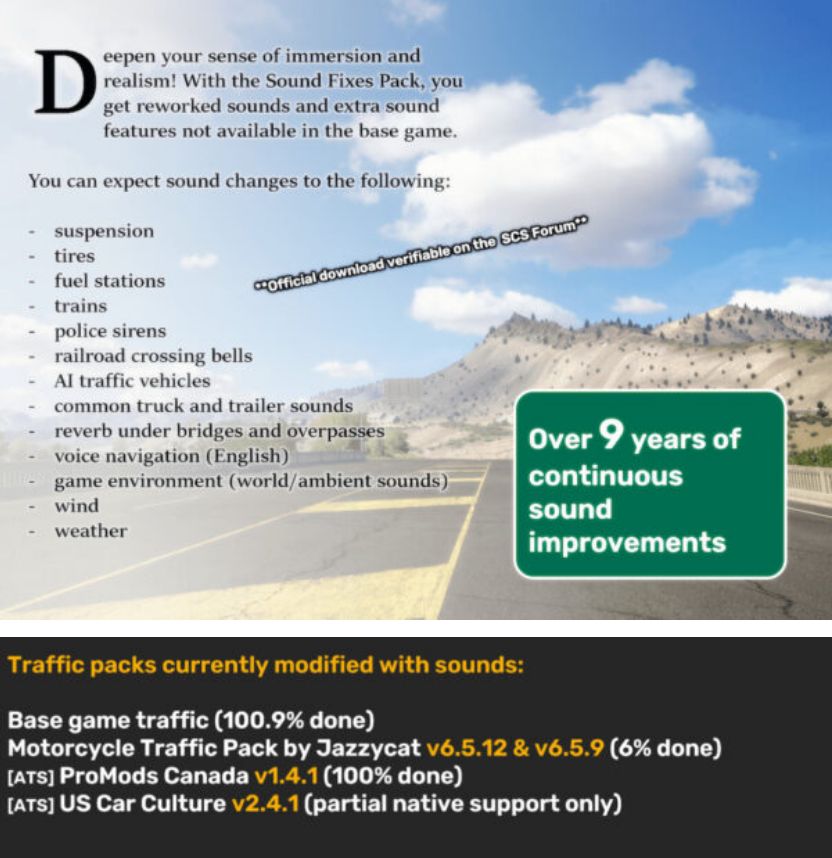 Credits: SCS Software, Drive Safely, antonvezdehod, Frontiersman, Grinch, Katixa, Kriechbaum, Max2712, Trayscapes, Vasily (Engine Voice Records), Zeemod