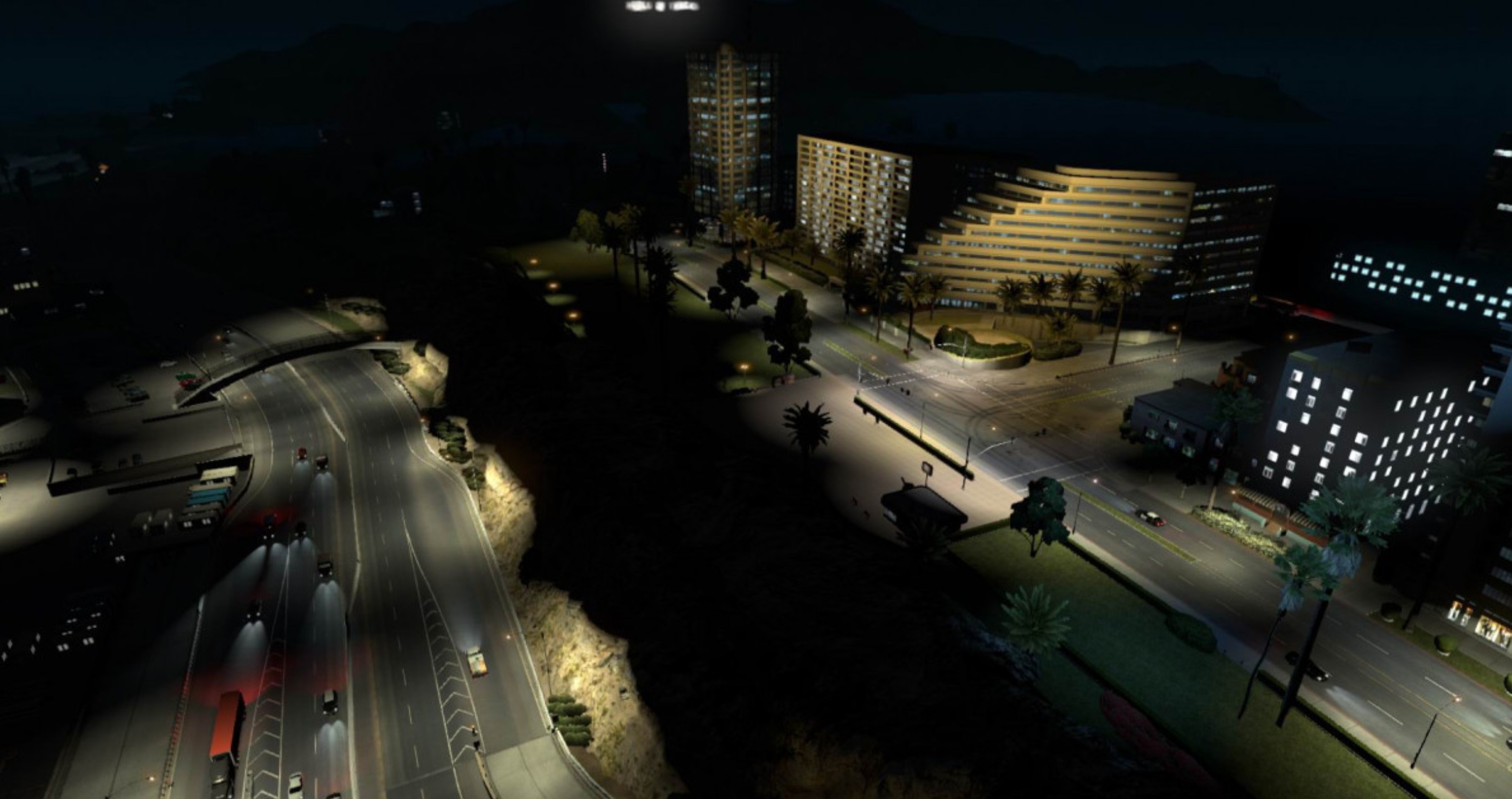 The same as in ETS2, it’s a remake of my Superlights mod with warm colours for street light and toned down power for them. Also, a quick improvement of the flare of the AI traffic, now visible from far distance.