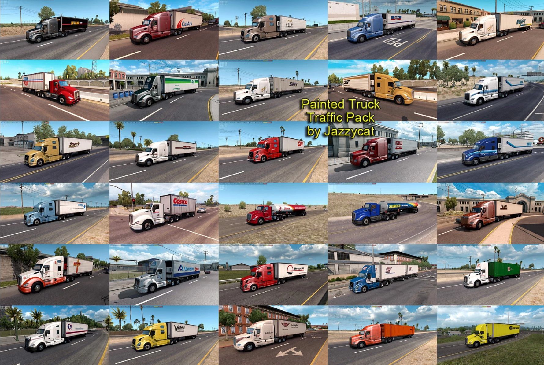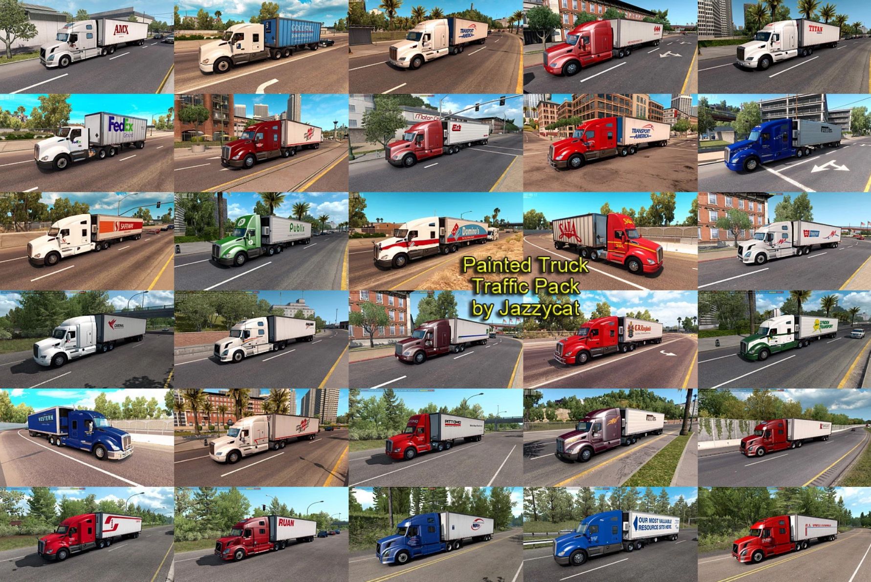 Pack adds in traffic truck+trailer combo with skins of over 200 real companies.