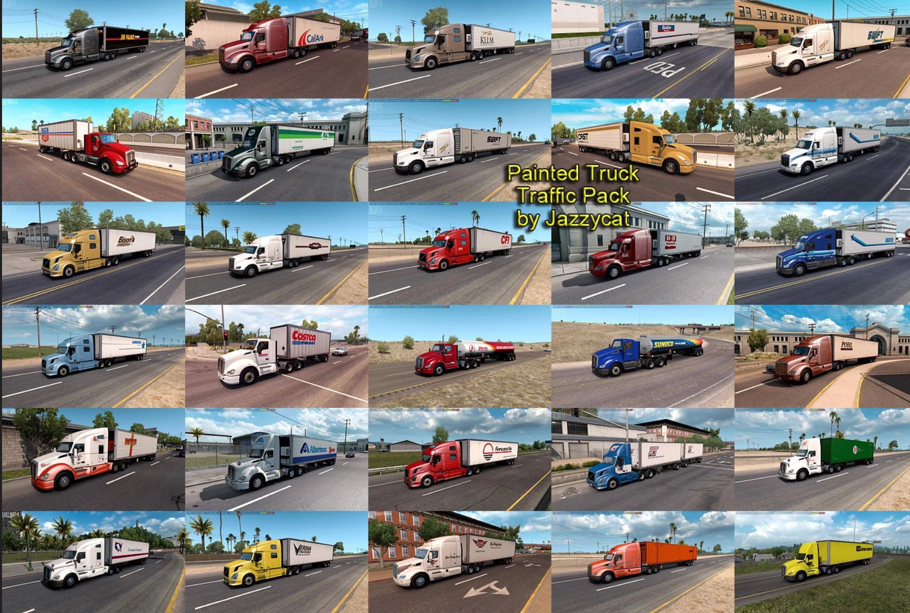 – Pack adds in traffic truck+trailer combo with skins of over 200 real companies.