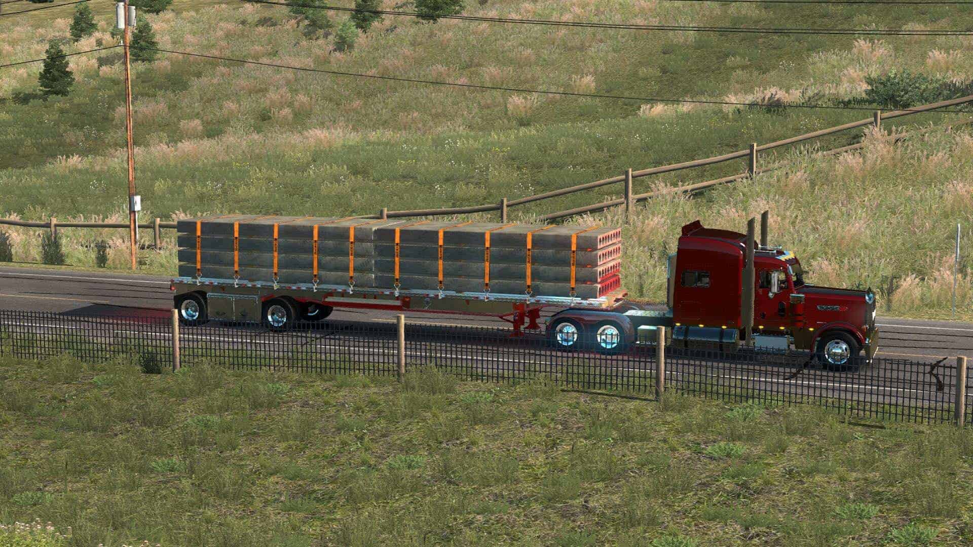 Credits: - CaMOnLy: Port to ATS/Pete Sign/Load arrangement - Corby: Trailer model/textures - Ventures87: Super Singles - Viper's 389 mod: Lights/Lightmask - Smarty, SCS, KeithD: Additional Loads - KeithD: Updated to 1.35 ownable
