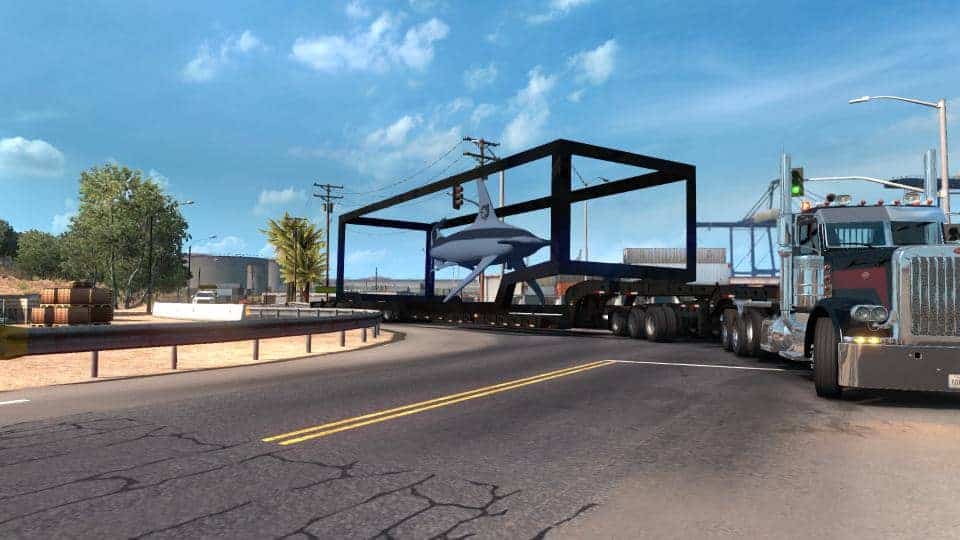 Synopsis: During the testing phase of Special Transport, SCS used a large placeholder chassis to represent the largest possible dimensions they’d have to work with. An inside joke later started to surface that the test cargo looked like a large empty fish tank. Thus the test cargo was dubbed as the “aquarium”. To further cement the joke, a hammerhead shark prop was later added into the test cargo.