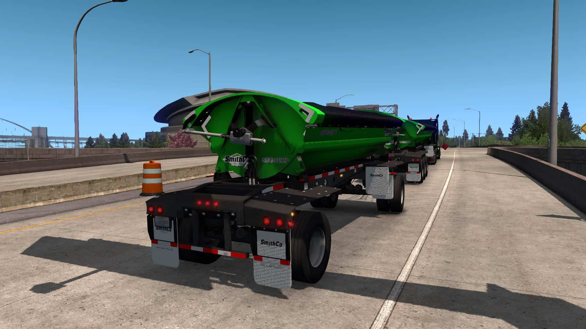 Finally – an actual side dump trailer for ATS! Haul soil, sand, and gravel in style with the SmithCo Side dump!
