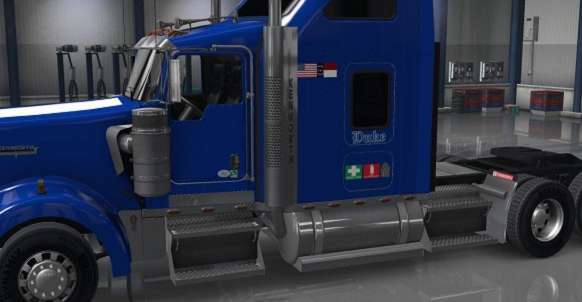 This is for the Kenworth W900. This is for fans of Duke University (basketball, football, etc.). In fact, this is a start of a collegiate series I decided to do. It does have some decals including the CALIFORNIA CLEAN IDLE sticker on the driver side door, an IFTA Cali sticker on both doors and a FIRE EXTINGUISHER and FIRST AID on both sleeper sides and an American flag and a NC flag. If you want your business name on it, please contact me/comment. Thank you.
