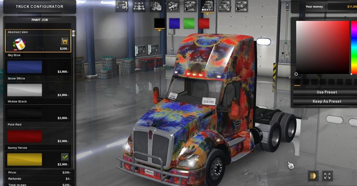 Abstract skin with four changeable colours for the Kenworth T680.