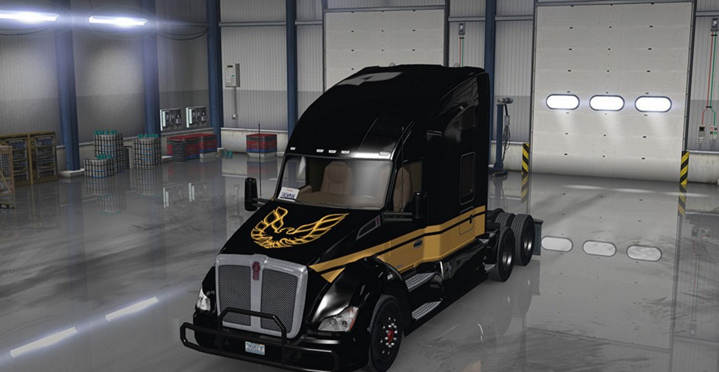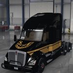 The Skin and the Mudflaps will be unlocked at Level 10 und can only be used on the Mid Roof and Hi Rise Sleeper on the Kenworth T680.