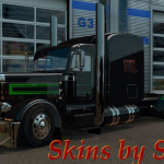 Black and Metallic Stripes skin for Peterbilt 389 Modified v1.11 for ATS by Viper2 and v2.0 by AMT. Not for Day cab. Please keep original link and credits.