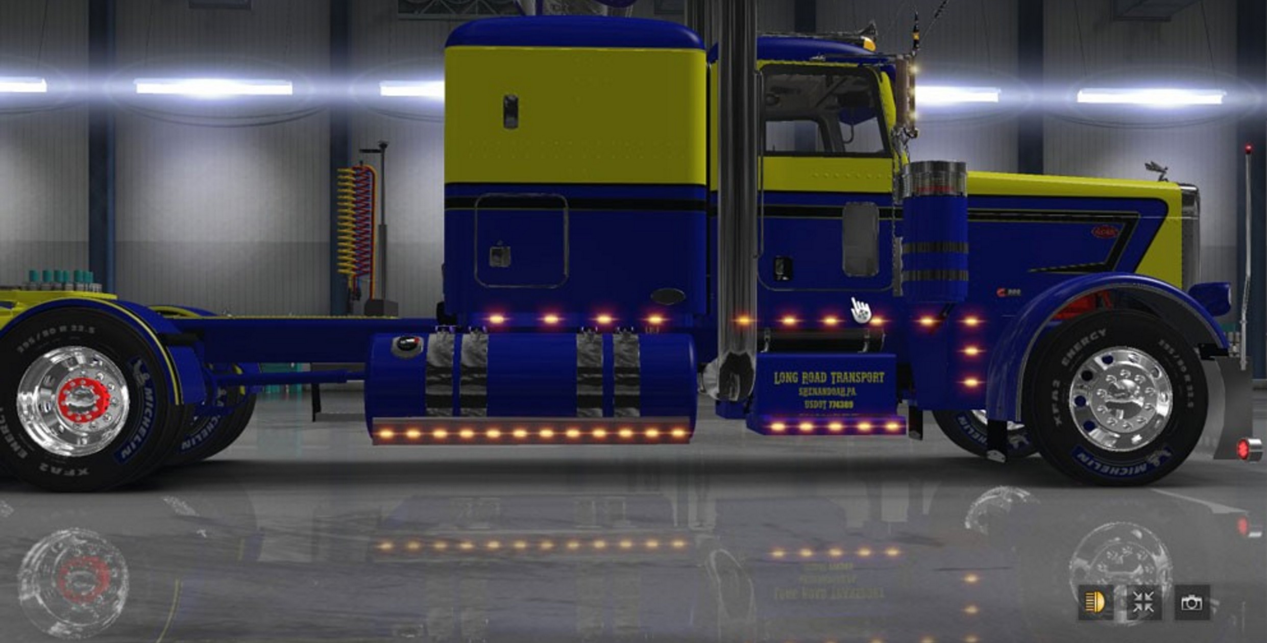 Peterbilt 389 Blue with Yellow Stripe Skin Mod