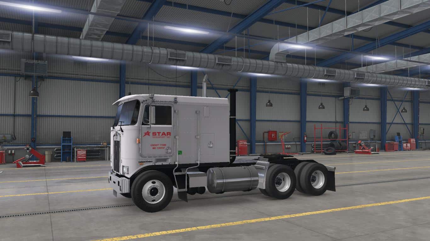 This is a Star Transport, Inc. skin for overfloater’s Kenworth K100E on all cabins EXCEPT for the long cabin on the