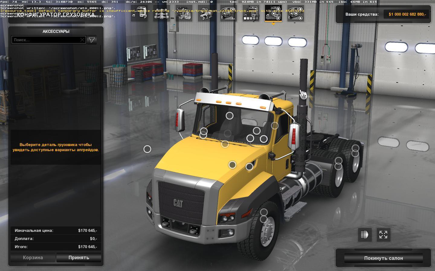 Crashes the game. Tried so many times to download it but only good thing is that you can use the wheels from this truck and add them to other trucks, kinda weird looking on a Peterbilt 389 but it worked. Gotta fix this to where its compatible to either V1.6 or V1.28